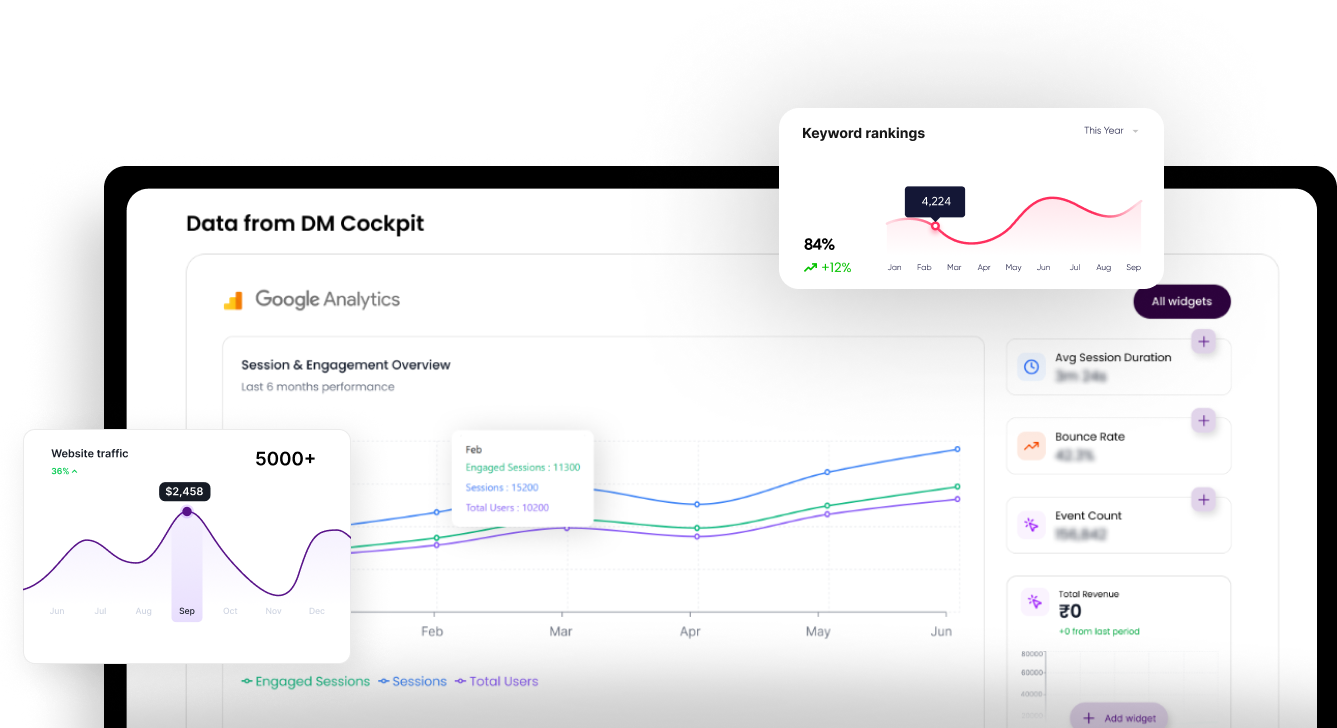 Traditional SEO agencies rely on slow reporting cycles and manual communication. DMCockpit changes that by combining SEO services with real-time data intelligence.
